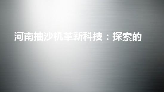 河南抽沙機革新科技:探索的未來?